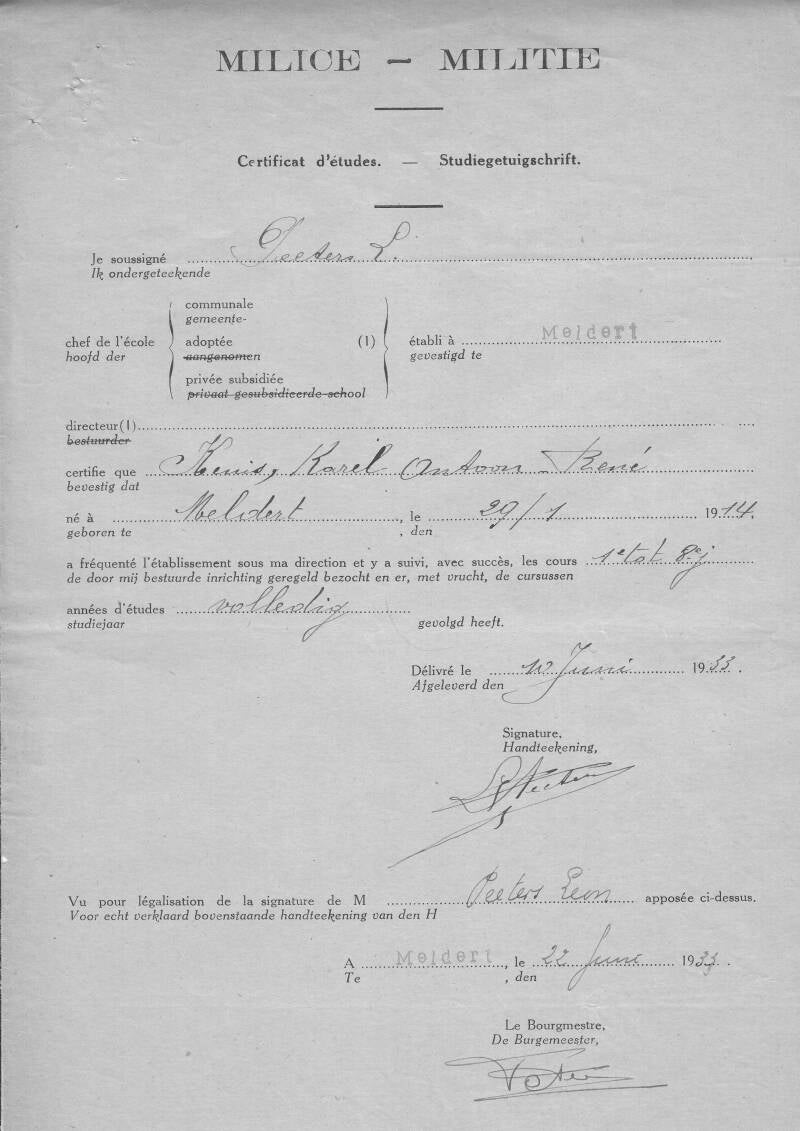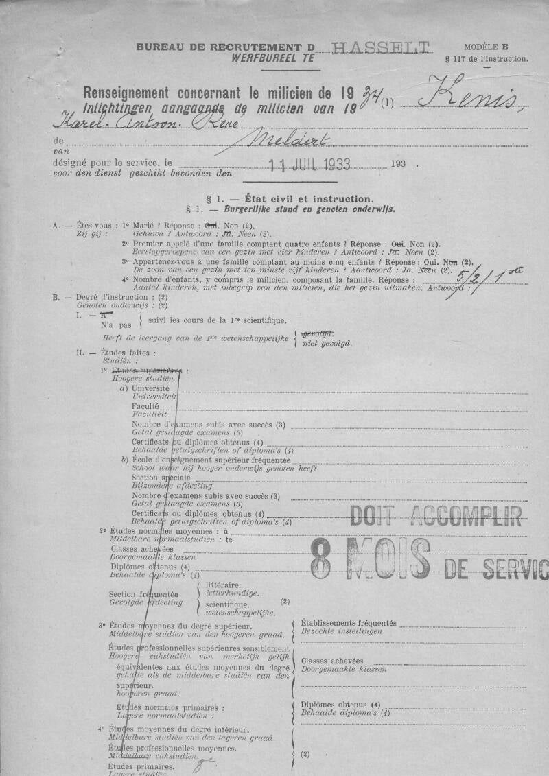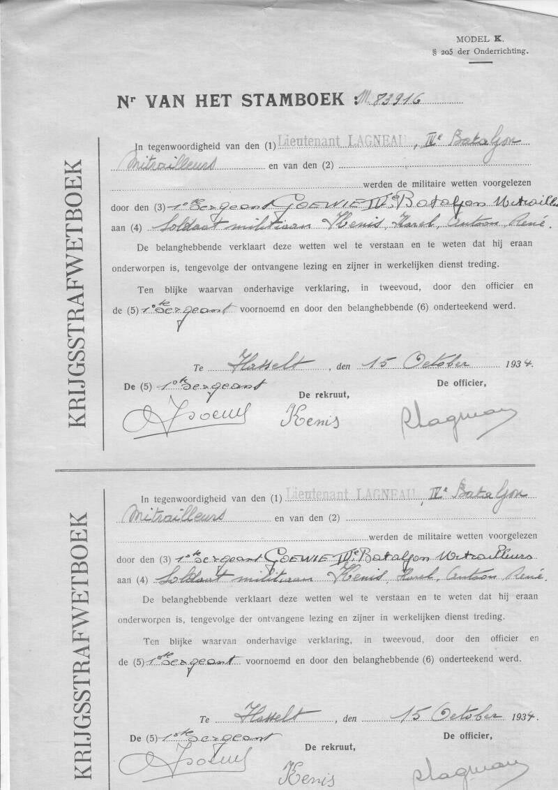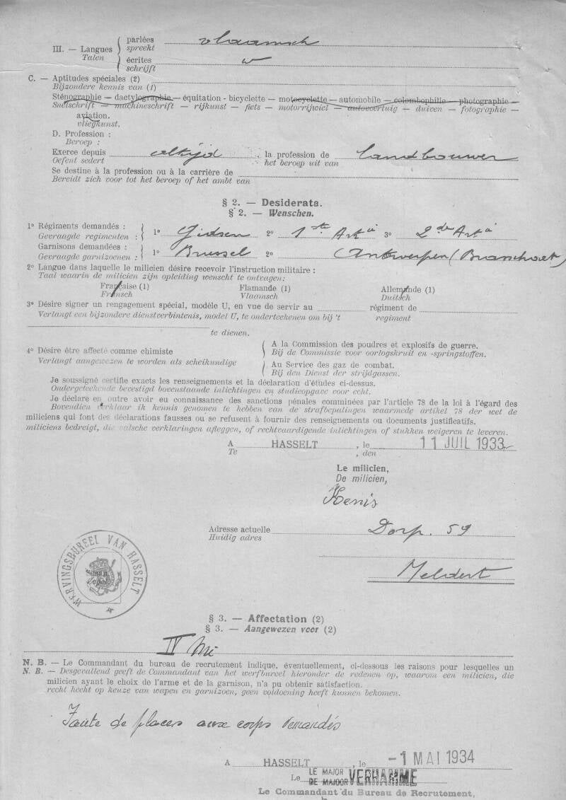 Vermits mijn vader geboren was op 29 januari 1914 moest hij zijn dienstplicht vervullen voor de klas 1934.