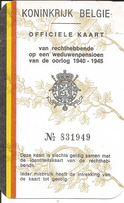 Kaart voor weduwepensioen voor mijn moeder na het overlijden van mijn vader.