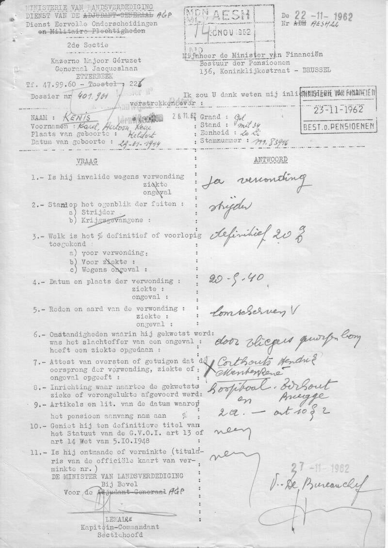 Twee van zijn strijdmakkers, Corthouts en Mertens, getuigen over de verwondingen van mijn vader: